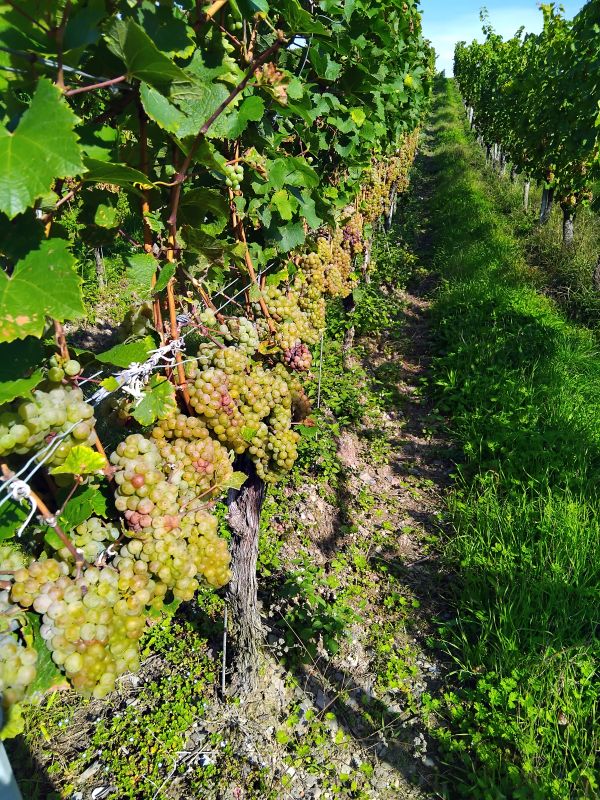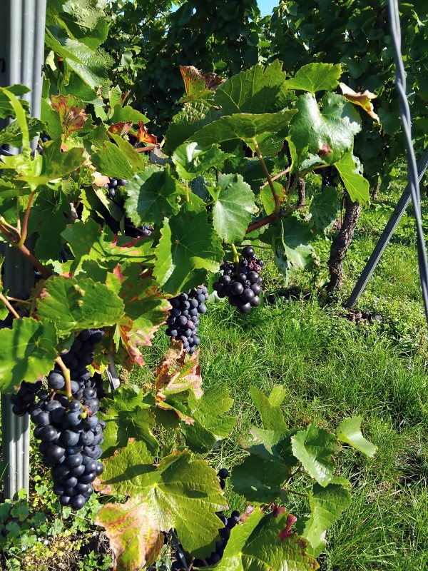 Die Traubenlese hat begonnen und wir sahen überall die Winzer in den Weinbergen bei der Traubenernte, zum Teil noch von Hand vielfach aber auch maschinell.
