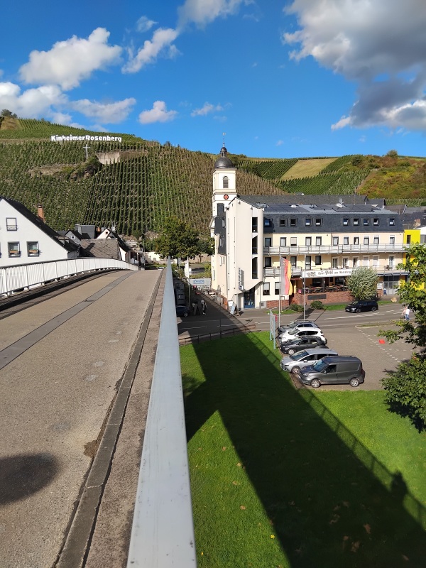 Wir hatten Glück und konnten uns direkt an die Mosel stellen. Bis “Manni”, der Platzwart kam um die Stellplatzgebühr zu kassieren, gingen wir erst einmal eine Runde durch Kinheim um zu schauen was sich innerhalb eines Jahres verändert hat. Viel fanden wir nicht.