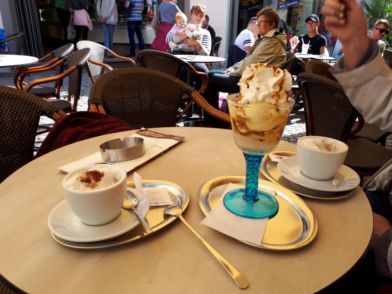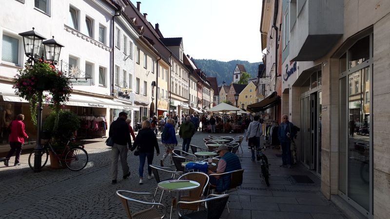 Füssen hat eine sehr schöne Altstadt, die wir uns am Nachmittag ansahen. Nach einer Pause an einem der vielen Cafe’s gingen wir noch zur Burg hinauf um die Aussicht über die Stadt zu geniessen. Wir wollten auch noch über den Wehrgang gehen, was aber wieder zusätzliches Eintrittsgeld bedeutet hätte. Da sich die Aussicht dadurch nicht verändert hätte, haben wir darauf verzichtet und sind dann langsam wieder zu unserem Wohnmobil zurück.