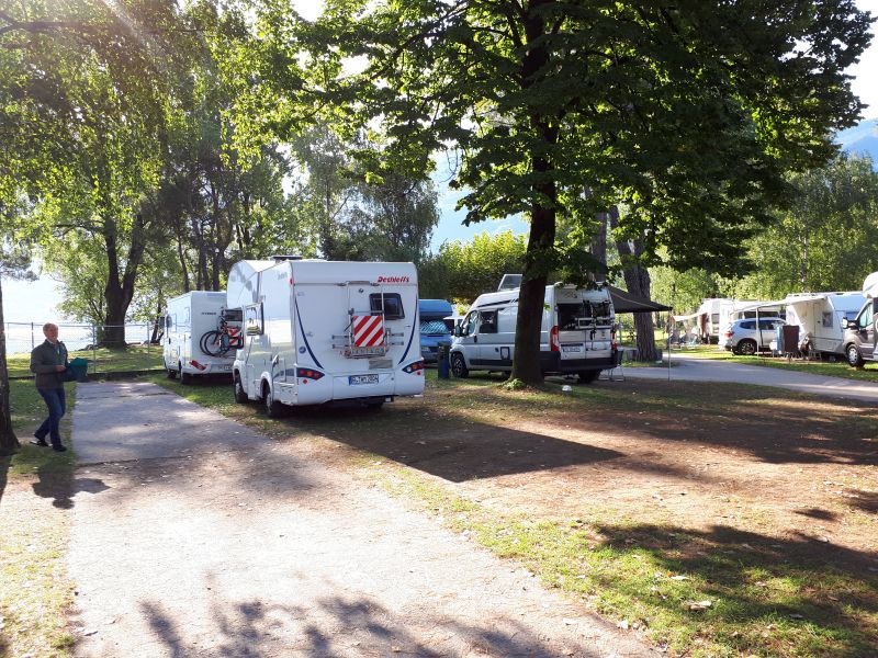 Wir fuhren weiter am See entlang bis Lesa-Solcio. Der Campingplatz in Solcio lag direkt am See, hatte ein gutes Restaurant und bot auch sonst alles was wir brauchten. Wir konnten uns einen Platz aussuchen und wählten einen Platz mit etwas Aussicht auf den See.