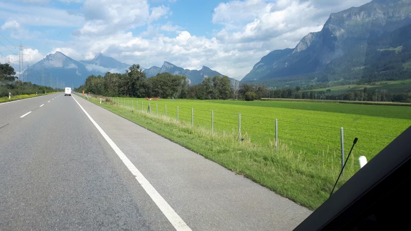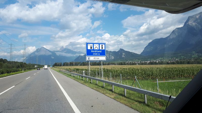 Eine Übernachtung in der Schweiz ersparten wir uns, machten aber am Parkplatz Heidiland Rast.