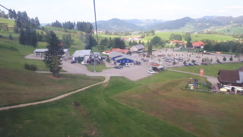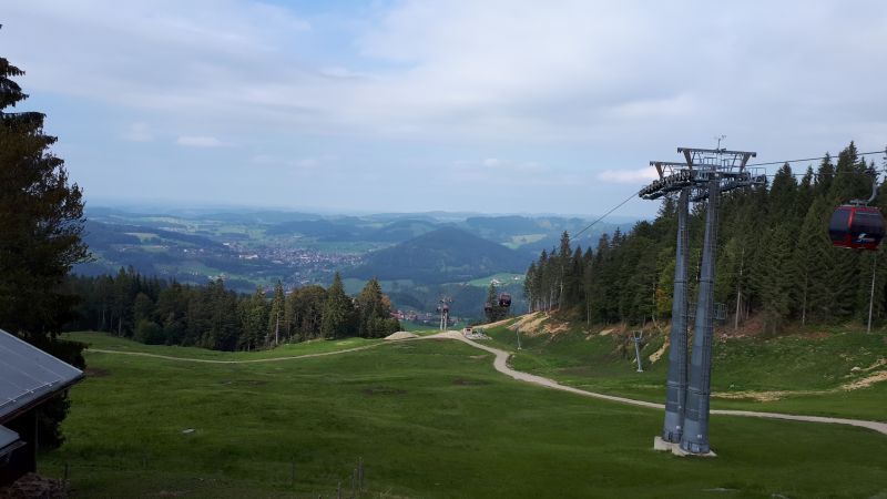 Von Scheidegg aus fuhren wir am nächsten Tag nach Oberstaufen zum Stellplatz Scheiblis. Dies ist ein Ortsteil von Oberstaufen, mit dem einzigen Wohnmobilstellplatz. Oberstaufen ist ca. 3 km auf einem anderen Berg entfernt. Das war uns zu anstrengend. Wir blieben also in Scheiblis und fanden den Weg zur Talstation der Imbergbahn. Wir fuhren auf den Berg hoch, tranken uns noch einen Kaffee bzw. ein Bier in dem Bergrestaurant und fuhren dann wieder herunter.
