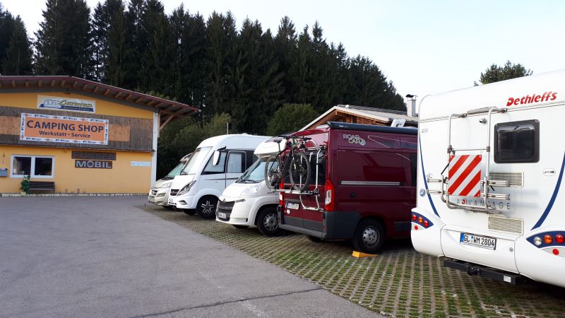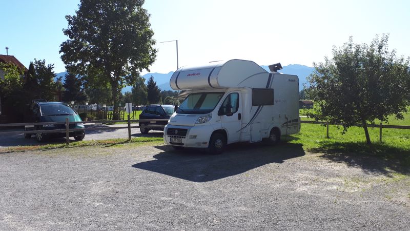 Zur Übernachtung fuhren wir auf den Wohnmobilstellplatz beim Campingbedarf in Füssen.