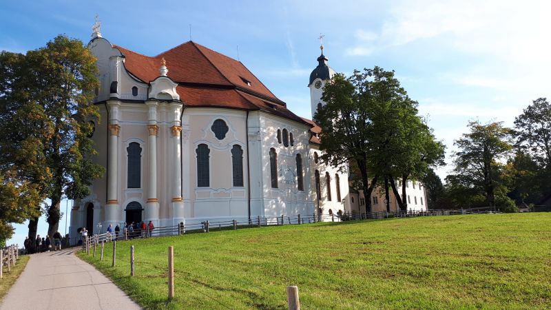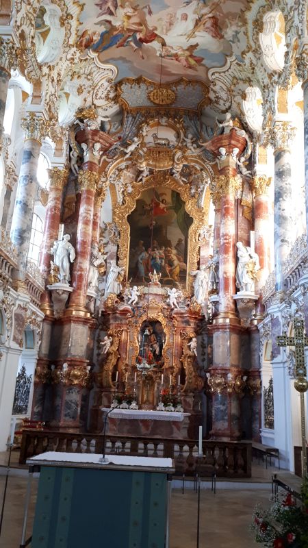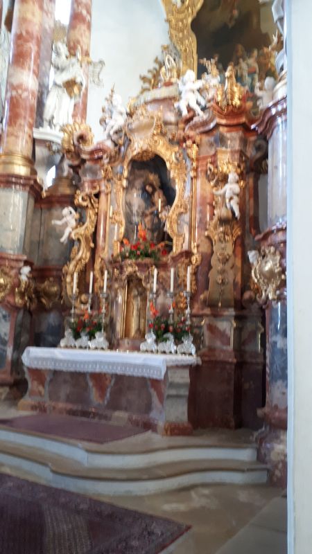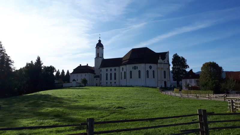 Unser nächstes Ziel war die Wieskirche. Die wollten wir uns unbedingt noch anschauen. Schon am frühen Morgen fuhren wir los und waren gegen 9:30 Uhr dort. lediglich ein Wohnmobil stand auf dem Parkplatz, so konnten wir ungestört die Kirche ansehen.