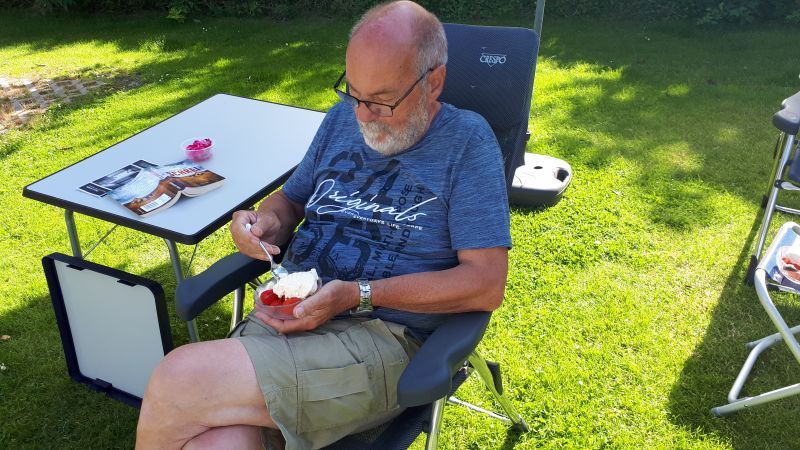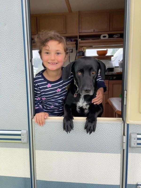 Am nächsten Morgen gingen wir zu unseren Kindern an den Wohnwagen. Unsere Enkelkinder erwarteten uns schon und auch Nero, schaute neugierig aus der Tür.