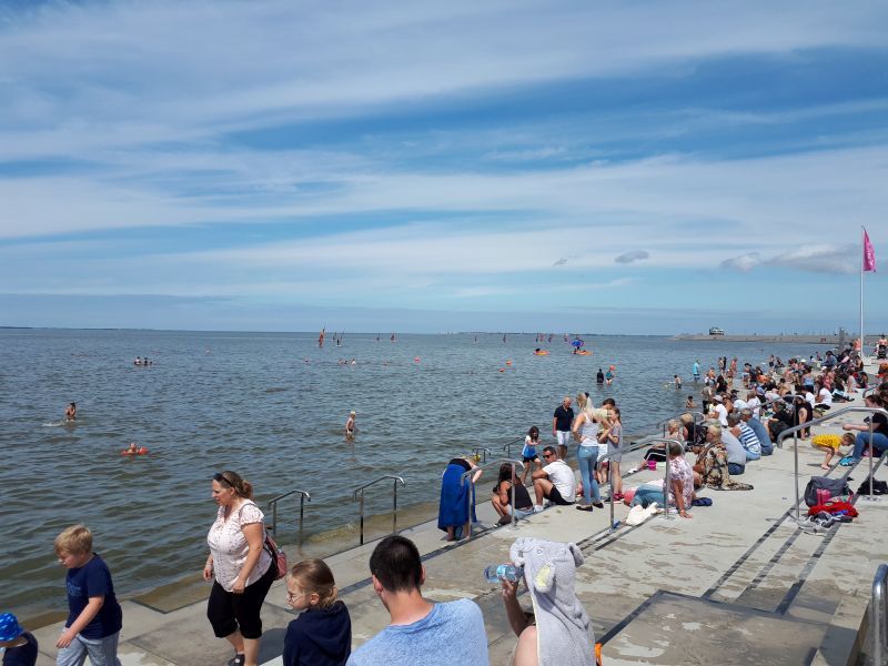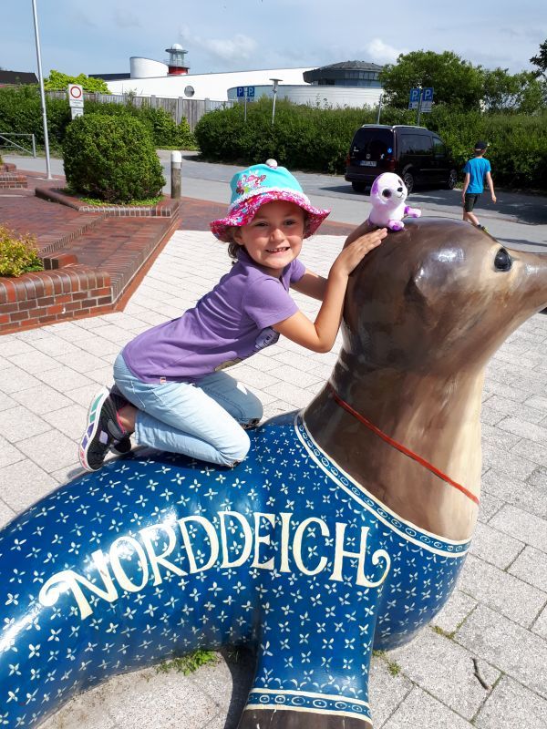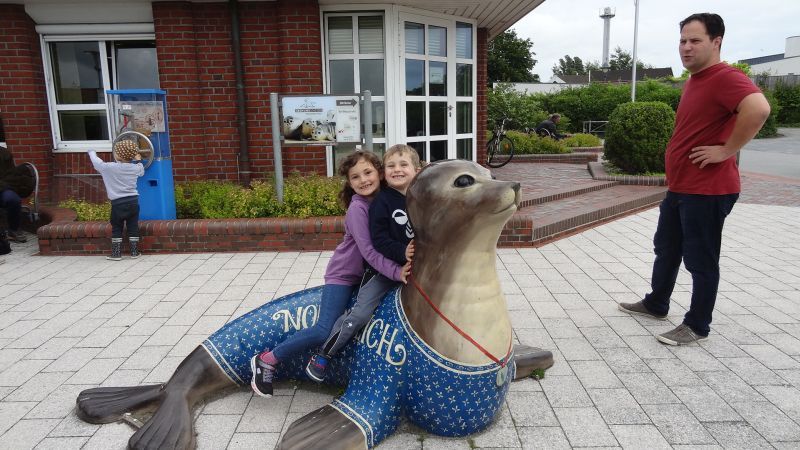 Gemeinsam fuhren wir dann in den Ort. Wir parkten auf dem Großparkplatz vor dem Schwimmbad und der Seehundstation. Mein Schwiegersohn ging zur Seehundstation um sich nach den Bedingungen für den Einlass zu erkundigen. In den Coronazeiten wird halt alles ein wenig komplizierter gemacht. Unser Einlasstermin war dann am Freitag um 10:00 Uhr.
