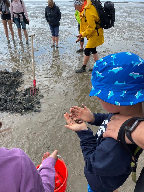 Von Wattwürmern und Krabben, Krebsen und Fischen und auch anderem Getier von dem die Wattführerin erzählte waren die Kinder begeistert am erzählen. Da es zwischenzeitlich wieder mal geregnet hat, war ich froh, dass ich trocken im Wohnmobil saß.