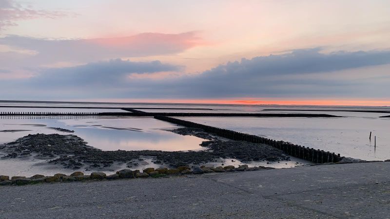 Für den nächsten Tag war eine Wattwanderung geplant. Wir gingen also alle zusammen nach Norddeich, aßen unterwegs noch eine Kleinigkeit und gingen dann zum Haus des Gastes. Der Himmel wechselte zwischen aufgelockerter und starker Bewölkung. Ich spürte, dass ich mich am Montag erkältet hatte. Da sich die Wolken immer mehr verdichteten beschlossen meine Frau und ich auf die Wattwanderung zu verzichten und ins Wohnmobil zurück zu kehren.