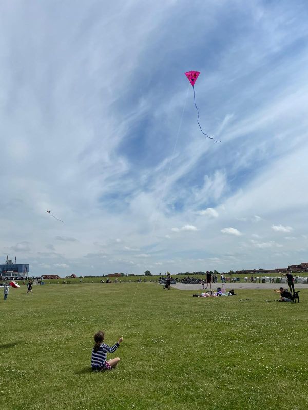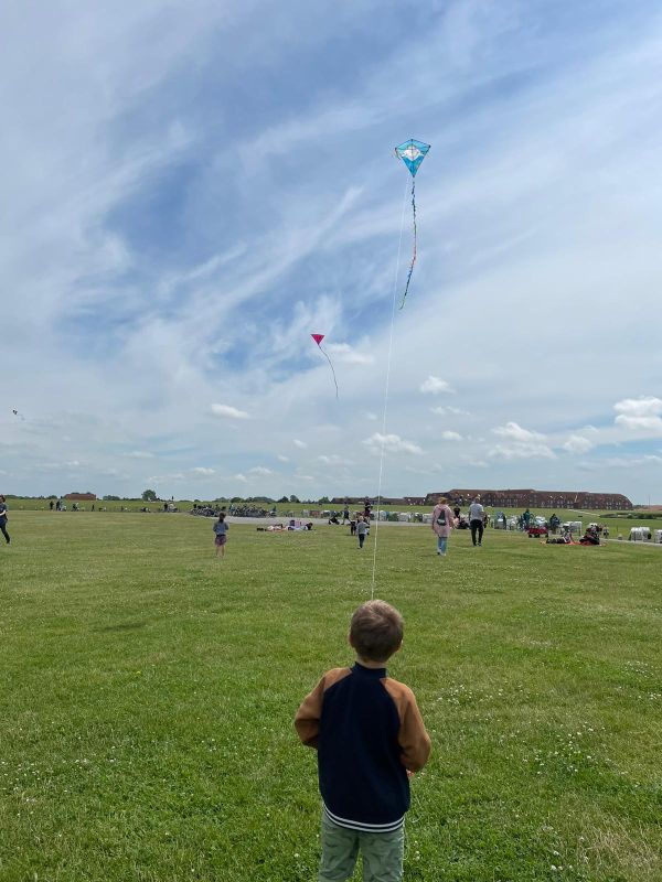 Danach gab es für die Kinder kein halten mehr, ab zur Drachenwiese. Jetzt mußte Opa ran und den Kindern zeigen wie man einen Drachen in die Luft bekommt. Nach einigen Anläufen und vor allem etwas aufkommendem stärkeren Wind waren die Drachen in der Luft.