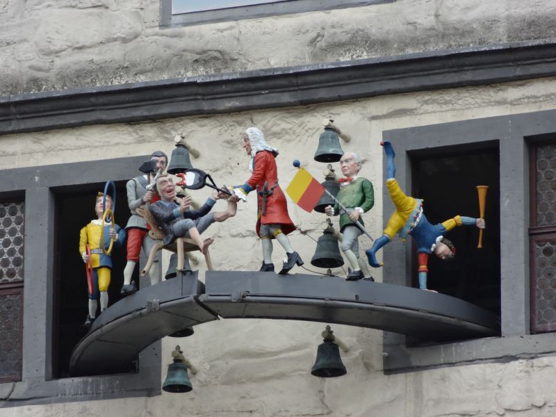 Kamen an diesem Narrenbrunnen vorbei, die Figuren werden in dem folgenden Bild beschrieben Brunnen mit dem Trompeter von Säckingenohne Kommentarleckeres Eis mit Cappuchino