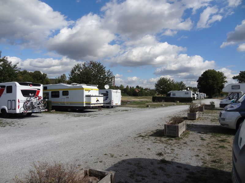 Im vorderen Teil ist der Stellplatz gepflastert, reicht für 4 – 5 Wohnmobile, danach ist der Boden aus Schotter überwiegend ohne Bewuchs, was wohl durch die Trockenheit verursacht wurde. Die Größe der Stellplätze ist sehr gut, man kann sich neben dem Fahrzeug großzügig ausbreiten.