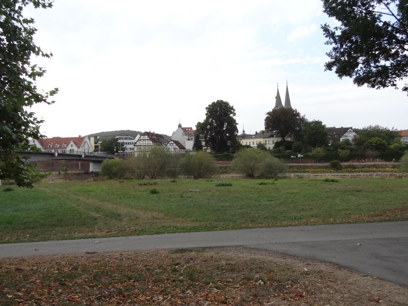 Am späteren Nachmittag gingen wir nochmal in die Stadt und schauten uns diese diesesmal ohne die Marktstände an. Es wurde aber allmählich doch kühler und man merkte den sich ankündigenden Wetterwechsel. Wir gingen also schnell über die Brücke zum Wohnmobil zurück. Von der Brücke aus konnte man sehen wie niedrig der Wasserstand der Weser war. Über Nacht regnete es beständig und auch am Morgen behielt der Regen zunächst die Oberhand. Davon wurde der Wasserstand der Weser aber auch nicht besser.