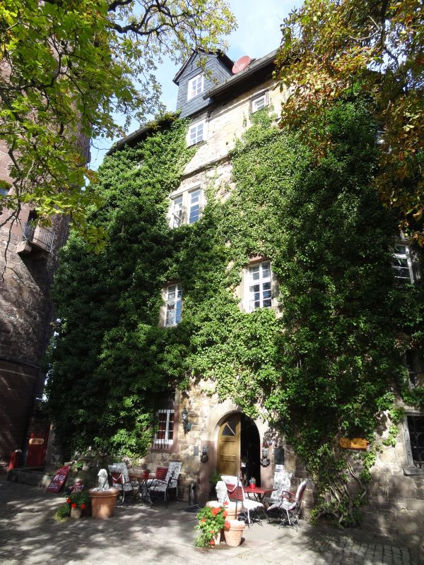 Nicht weit von der Sababurg entfernt ist die Trendelburg. Die schauten wir uns auch im Innenhof an. Das Betreten ist zwar nur für Hotelgäste und Restaurantbesucher erlaubt. Wir wollten ja das Restaurant besuchen, das machte aber erst um 18:00 Uhr auf. Auch die Trendelburg gilt als Märchenschloss für das Märchen von Rapunzel und als wir die Burg wieder verliessen, sahen wir, dass vom Balkon des Turms die zum Zopf geflochtenen Haare herunterhingen.