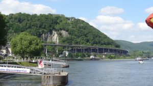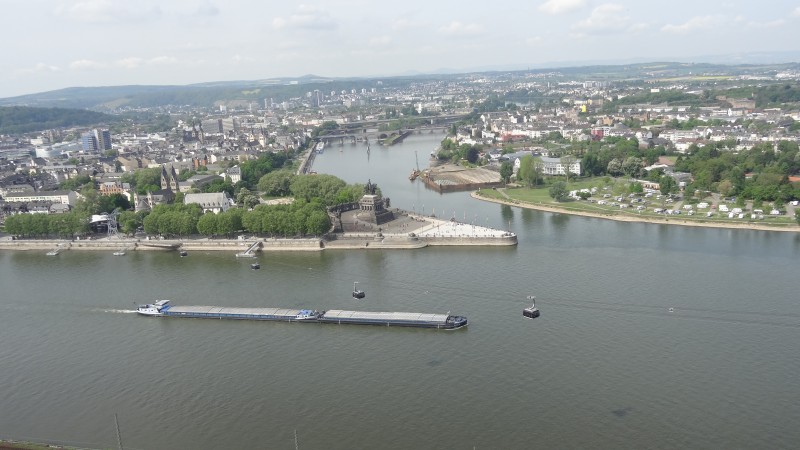 Mit einer kleinen Personenfähre, die ständig Pfalztour002zwischen Stellplatz und dem anderen Moselufer verkehrte, kommt man zur anderen Moselseite, fußläufig zum Deutschen Eck, der Altstadt und der Seilbahn über den Rhein zur Festung Ehrenbreitstein. Bei schönem Wetter fuhren wir mit der Seilbahn zur Festung hoch und genossen den Ausblick auf den Rhein, die Mosel, das Deutsche Eck und Koblenz sowie unseren Stellplatz. Schade, dass die Gondel nicht stehen blieb um dieses Panorama zu genießen. Oben angekommen gingen wir in die Festung hinein. Vom Hauptplatz der Festung konnten wir vom Rand auch wieder den Blick über Rhein und Mosel genießen.