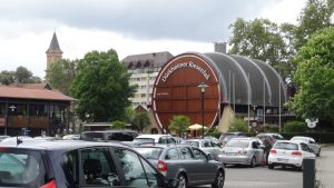 Inzwischen war es Mittag, Zeit um etwas zu essen. Also machten wir uns auf den Weg ins Städtchen. Wir hatten vor im Bad-Dürkheimer Riesenfaß den berühmten Pfälzer Saumagen zu essen. Leider war aber kein Platz zu bekommen, alles war reserviert. Wir hatten nicht daran gedacht, dass ja weißer Sonntag war.( für die Nichtkatholiken: Weißer Sonntag ist für die 9 jährigen Kinder der Tag an dem sie in der Kirche zum ersten Mal die heilige Kommunion empfangen dürfen). Also gingen wir hungrig durch die Stadt bis zum Kurpark und aßen uns dort eine Kleinigkeit. Zurück ging es dann zu den Salinen und anschließend wieder zum Wohnmobil.