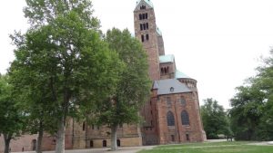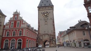 Etwa 4 Stunden verbrachten wir in dem Museum, aßen Pfalztour073dort zu Mittag und gingen erst am frühen Nachmittag in die Stadt um uns Speyer noch ein wenig anzuschauen. Vor allem wollten wir uns den Dom ansehen. Aber auch die Stadt selbst ist sehenswert. Wir gingen die Hauptstraße entlang bis zu dem abgebildeten Turm und kehrten dann in eine Eisdiele bzw. die Außenterrasse ein um uns ein schönes großes Eis zu bestellen. Ich wollte auch noch zum Ahorn-Wohnmobilhändler gehen um uns die doch recht preiswerten PLA- und Kentucky-Wohnmobile anzuschauen; aber von der vielen Lauferei taten uns auch die Füße weh und wir waren froh als wir es uns im Wohnmobil wieder gemütlich gemacht hatten. Am nächsten Tag fuhren wir nach Neustadt und gingen zunächst ein wenig durch die Stadt. Am Marktplatz entlang, durch die kleinen malerischen Gassen und wieder zurück zur Kirche am Marktplatz. Interessant an der Kirche waren die beiden unterschiedlichen Türme; der Turm im Vordergrund hatte nicht die übliche Kirchturmspitze, sondern ein Wohnhaus als Abschluß. Nach unserer Stadtbesichtigung ging es zum Hambacher Schloß. Einen Teil der Strecke konnte man mit dem Wohnmobil hochfahren, den Rest mußte man laufen.