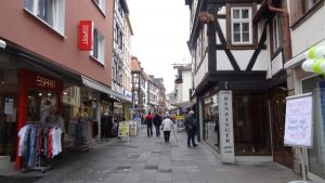 Quedlinburg ist Weltkulturerbe. In keiner Stadt Deutschlands gibt es – nach Recherche im Internet – mehr Fachwerkhäuser als in Quedlinburg. Als Stellplatz hatten wir uns zunächst den Platz an den Fischteichen ausgesucht. Bei näherer Betrachtung gefiel uns dieser Platz aber nicht, weil die Wohnmobilplätze nur am Rand eines Großparkplatzes lagen.Deshalb fuhren wir zu dem Stellplatz am Schlossberg, wo wir auch über Nacht blieben. Die Anfahrt zu dem Stellplatz wurde durch Baustellen bedingte Umleitungen etwas schwierig. Wir fuhren den Stellplatz über eine sehr schmale gepflasterte Straße an. Bevor wir in die Straße einbogen hatte ich das Gefühl, dass wir hier nicht durchpassen und ging den Weg deshalb zuerst mal zu Fuß ab.