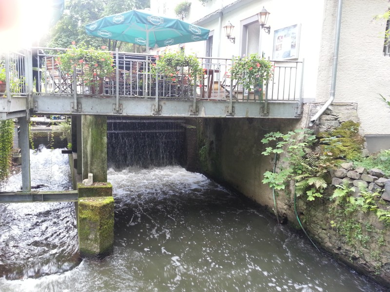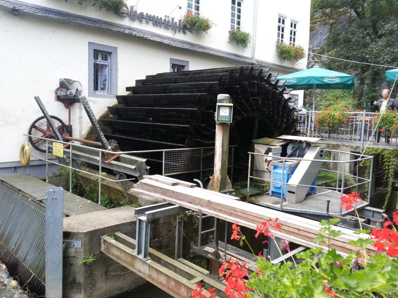 Wir gingen dann durch dieses mittelalterliche Städtchen, dass vom Leukbach durchflossen wird. Mitten in der Stadt ist dann ein ca. 20 m hoher Wasserfall, der früher eine Mühle antrieb. Heute ist es eine der größten Touristenattraktionen Saarburgs.