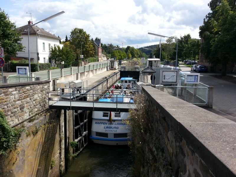 Selbst unseren Wohnmobilstellplatz konnte man erkennen. Am späten Nachmittag, es hatte wieder zu regnen angefangen, gingen wir zurück. Wir waren gerade auf der Mitte der Brücke, als der Himmel die Schleusen öffnete. Bis wir am Wohnmobil waren, waren wir vollständig durchnäßt. Meine Regenjacke erwies sich als nicht brauchbar, trotz Regenjacke war ich völlig nass geworden. Meine Frau war durch den Schirm zumindest oben etwas besser geschützt, aber auch Sie war ab Gürtellinie völlig nass. Leider blieb das Wetter den ganzen Abend so weiter und wir blieben daher im Wohnmobil. Am nächsten Tag war es dann wieder besser, es war zwar bewölkt, regnete aber nicht mehr. Unsere Absicht war, die Mosel antlangzufahren, in Cochem eine weitere Nacht zu verbringen und dann allmählich wieder nach Haus zu fahren.