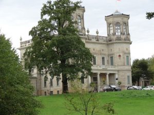 Nach dem Mittagessen gingen wir noch ein wenig durch den Ort und dann zu den Elbschlössern, Schloss Albrechtsberg, Lingnerschloss und Schloss Eckberg, die wir bereits von der anderen Seite aus dem Bus heraus gesehen hatten. Ein Schloss ist in Privatbesitz und wohl nicht zugänglich. Das 2. Schloss, nur wenige Meter entfernt, wird noch renoviert; es ist aber bereits ein Restaurant vorhanden. Von der Außenterrasse hat man von dort einen sehr schönen Blick über das Elbtal mi dem blauen Wunder. Von dort gingen wir zu dem 3. Schloss, dass wohl als Hotel ausgebaut ist. Anschließend fuhren wir mit dem Bus wieder zurück bis kurz vor dem Wohnmobilstellplatz. Auf dem Platz vor der Augustusbrücke entdeckten wir den goldenen Reiter, ein Reiterstandbild August des Starken.