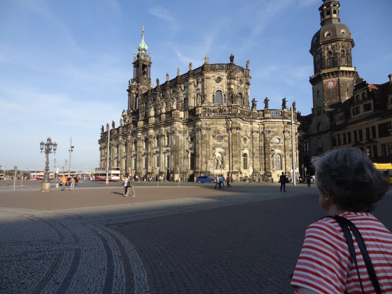 Unmittelbar daneben ist das Dresdener Schloss und Kathedrale von hinten direkt davor die Kathedrale Sanctissimae Trinitatis.