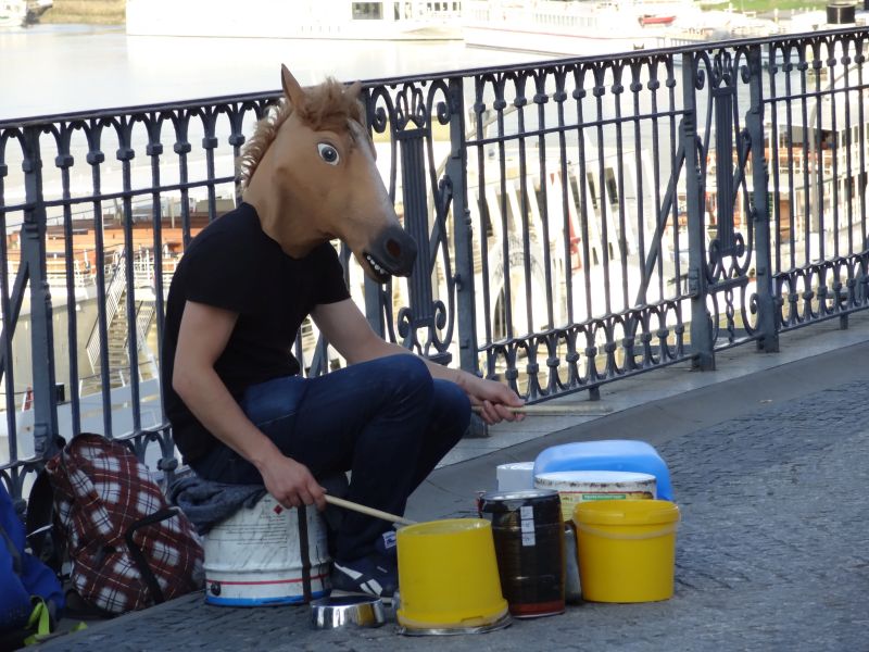 Nach unserer Rundfahrt schlenderten wir noch ein wenig durch die Stadt, sahen auf der Brühlschen Terrasse ein trommelndes „Pferd“