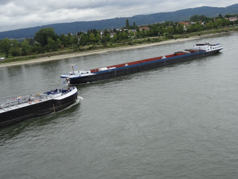 Von der Brücke hat man dann einen sehr schönen Blick über den Rhein, sowohl Rheinauf, als auch Rheinabwärts.