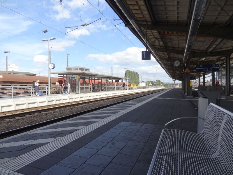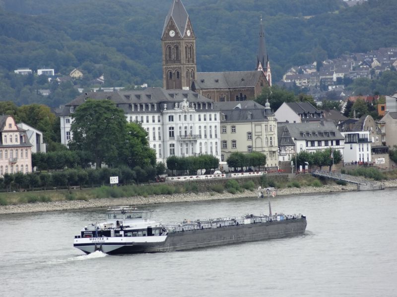 Recht nahe am Stellplatz ist eine Bahnstation, um in Richtung Koblenz oder Richtung Neuwied zu fahren. Wir werden heute (29.8.2015) die Bahnstation nutzen um nach Neuwied auf die andere Rheinseite zu fahren. Bereits am frühen Morgen, nachdem wir vom Supermarkt zurückkamen, gingen wir zum Fahrkartenautomat. Bahnunerfahren wie wir sind, stellte uns der Fahrkartenautomat erst einmal vor einige Rätsel. Man konnte zwar verschiedene Fahrkartensorten auswählen, aber eine Hin- und Rückfahrkarte war nicht dabei. Also wählten wir den Einzelfahrschein. Aber über die Pünktlichkeit der Bahn brauchten wir nicht zu meckern, das war in Ordnung.