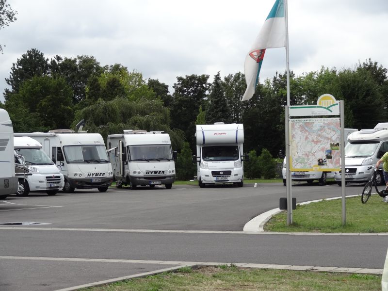 Direkt im Anschluß an den übriggebliebenen Anlagen, die im Rahmen einer irgendwann einmal stattgefundenen Landesgartenschau geschaffen wurden. Allerdings ist der Stellplatz sehr schlauchmäßig zwischen Main und Sportplatz gelegen. Dadurch ist es sehr weit zu den Entsorgungspunkten und je nach dem wo man steht, fährt alles an einem vorbei. Außerdem ist tagsüber bis in die frühen Abendstunden der Lärm des Sportplatzes zu hören. Empfindliche Ohren hören nachts die Bahn vom gegenüber DSC01333liegenden Ufer und die Geräusche der hinter dem Sportplatz liegenden Fabrik. Es lag ständig ein unangenehmer sirrender Ton in der Luft. Die Aussicht auf die Stadt ist durch den hohen Uferbewuchs leider fast gänzlich verhindert. Allerdings kommt es hier auch auf den gewählten Platz an. Das Foto wurde nicht vom Stellplatz, sondern von der Mainbrücke (die im übrigen eine reine Fußgängerbrücke ist) gemacht.DSC013476.5.2015 Unsere Mainreise führte uns jetzt weiter nach Marktheidenfeld. Der Stellplatz ist sehr groß und nicht aufgeteilt. Man kann sich also hinstellen wo man will. Der DSC01350Platz liegt ebenfalls direkt am Main, wird aber während diverser Veranstaltungen für Wohnmobile gesperrt. Es existiert leider nur eine Stromsäule mit 8 Anschlüssen.