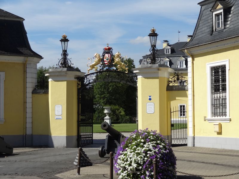 Gegenüber dem Haupteingang liegt das Kronentor und links neben dem Haupteingang findet man den Nymphenbrunnen.