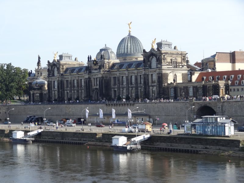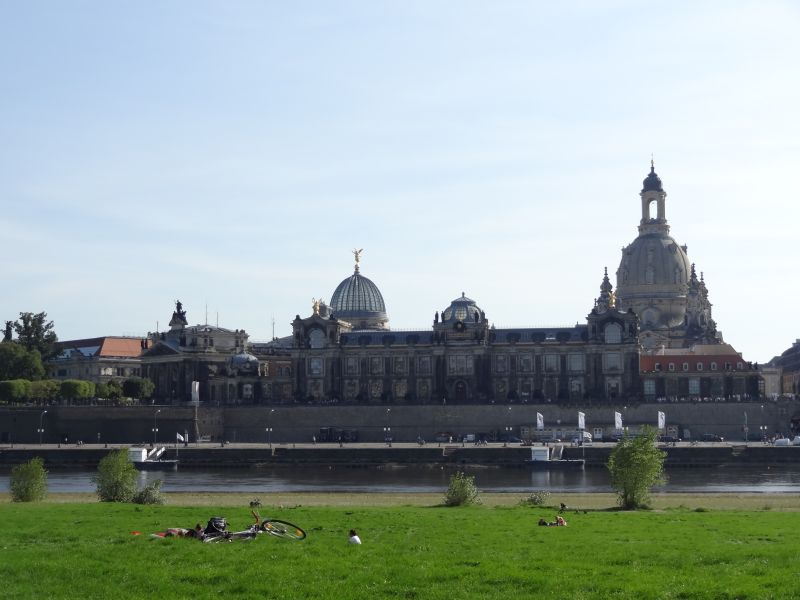 Wir standen also direkt gegenüber der Dresdener Altstadt und zur Elbe hin, konnten aber die schöne Sicht nicht genießen, da alles mit Büschen und Bäumen zugewachsen ist. Schade. Vom Stellplatz aus konnte man an der Elbe entlang zur Augustusbrücke gehen. Direkt nachdem man die Brücke überquert hat, steht man bereits vor den meissten Sehenswürdigkeiten oder ist nur wenige Gehminuten davon entfernt. Ob Semperoper, Zwinger, Dresdener Palast oder die Kathedrale, alles ist mit einem Blick zu erfassen.