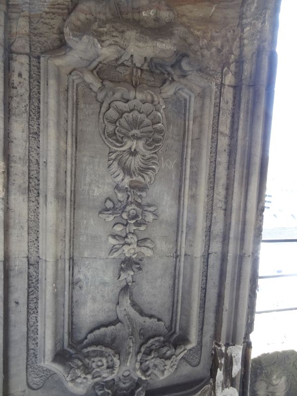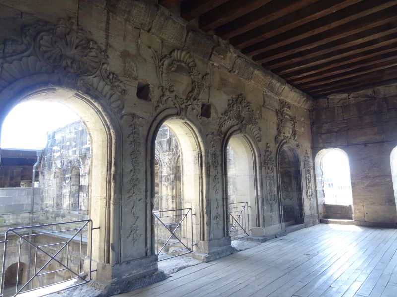 Im darüber liegenden Geschoß war ebenfalls eine Kirche, aber für die Führungsschicht vorhanden. Hier sind die Säulen mit Steinmetzarbeiten ausgestattet die erstaunlich gut erhalten sind.