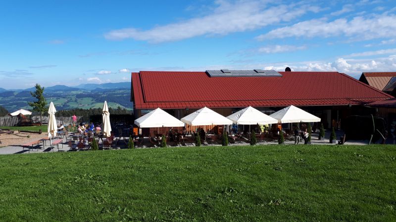 Von Scheidegg aus fuhren wir am nächsten Tag nach Oberstaufen zum Stellplatz Scheiblis. Dies ist ein Ortsteil von Oberstaufen, mit dem einzigen Wohnmobilstellplatz. Oberstaufen ist ca. 3 km auf einem anderen Berg entfernt. Das war uns zu anstrengend. Wir blieben also in Scheiblis und fanden den Weg zur Talstation der Imbergbahn. Wir fuhren auf den Berg hoch, tranken uns noch einen Kaffee bzw. ein Bier in dem Bergrestaurant und fuhren dann wieder herunter.