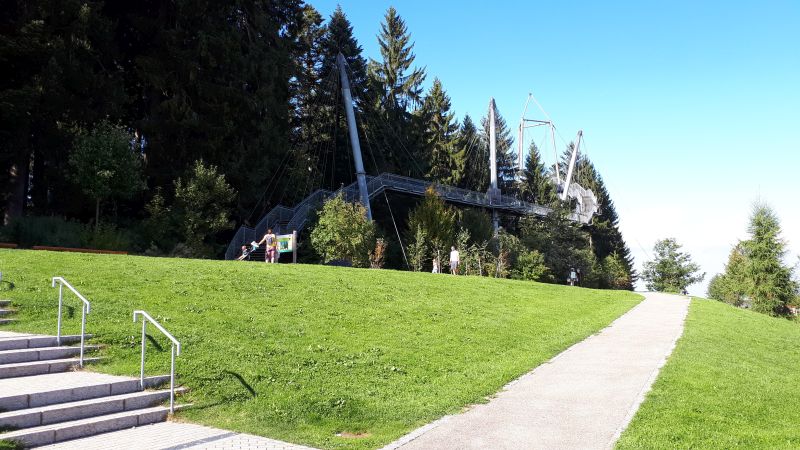 Nachdem wir etwas gegessen hatten, fuhren wir über Bregenz und Lindau auf den Stellplatz in Scheidegg. Hierhin wollten wir ja auch schon im Mai, hatten das Vorhaben aber auf Grund des winterlichen und nassen Wetters abgebrochen. Der Stellplatz liegt direkt beim Kurhaus und etwa 20 Gehminuten vom Skywalk Scheidegg entfernt. Den wollte ich gerne sehen. Wir machten uns also zu Fuß auf den Weg. Es dauerte doch etwas länger, aber das Erlebnis war die Anstrengung wert.