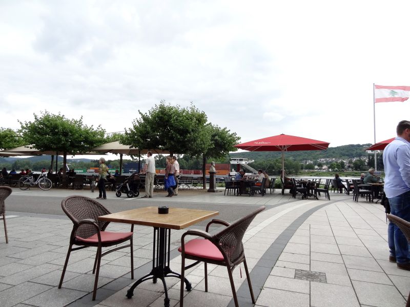 Direkt neben uns hatte sich ein Liner hingestellt und blockierte uns damit die Sicht auf den Rhein. Fanden wir nicht so prickelnd, da auch noch genügend andere Plätze frei gewesen wären.
