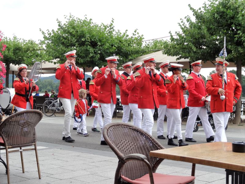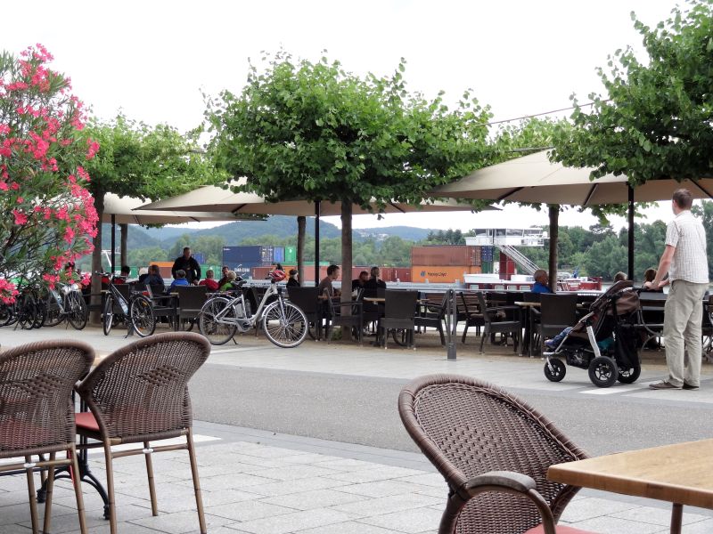 An der Promenade kann man hervorragend sitzen und den Blick auf den Rhein mit den vorbeifahrenden Schiffe geniessen. Einige Meter weiter gab es ein Lokal, ebenfalls mit Aussengastronomie. Hier aßen wir zu Mittag. Nach einem Spaziergang durch den Ort kamen wir wieder zu unserem Wohnmobil.