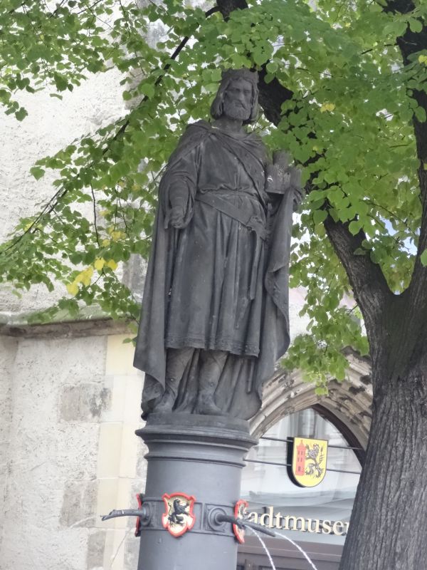 Durch die Geschäftsstraßen kamen wir dann zum Brunnen in FreibergMarktplatz mit dem Rathaus.