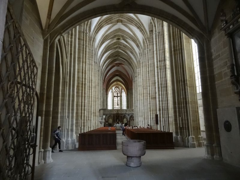 Im hohen Chor sind Figuren der Stifter und Bistumsheiligen dargestellt. Im 15. Jahrhundert wurde die Fürstenkapelle an den Dom angefügt. An den gegossenen Grabplatten und Epitaphen ist die Geschichte des Doms im Mittelalter abzulesen.“ Das alles habe ich natürlich nicht gewußt sondern der Rückseite der Eintrittskarte des Doms entnommen. Allmählich näherte sich der Zeitpunkt unserer Verabredung mit unserem Busfahrer. Unter dem besagten Baum vor dem Dom saßen bereits einige Leute, die vermutlich zu unserem Bus gehörten.