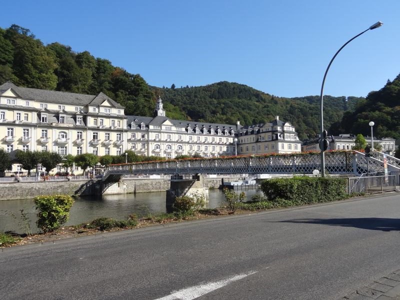 Am nächsten Morgen fuhren wir dann mit dem Ahrtal-Express nach Bad-Neuenahr. Bad-Neuenahr ist der mondänere und weitaus bekanntere Stadtteil. Direkt an der Haltestelle vor der Brücke liegt das Steigenberger Hotel mit der angeschlossenen Kurklinik und nur einige Meter weiter in die Straße hinein die bekannte Spielbank.