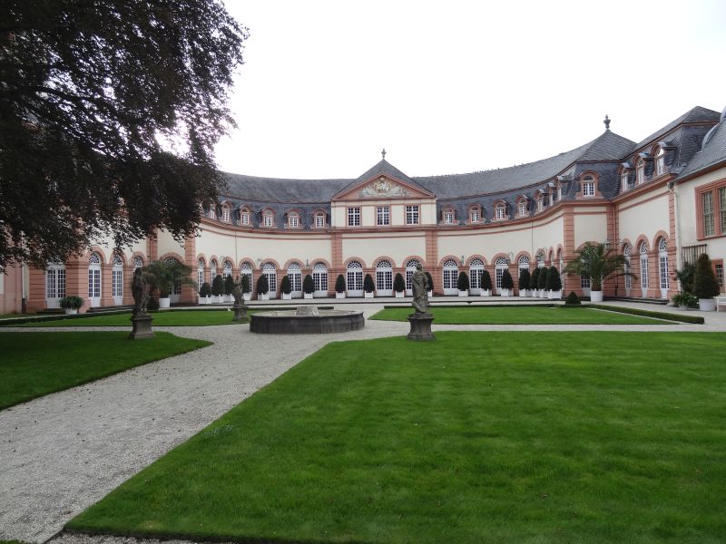 Zum Kaffee trinken wollten wir gerne im Café des Landesmuseums im Palastgarten sein. Auf dem Weg dorthin gingen wir noch in die Konstantin Basilika und am Kurfürstlichen Palais vorbei. Als wir an dem von uns ausgesuchten Café ankamen, war die Terrasse voll. Innen wollten wir nicht sitzen und außen waren nur noch einzelne Plätze an den besetzten Tischen frei. Wir mögen weder beim Campen noch beim Kaffee trinken die Kuschelromantik und gingen deshalb zurück in die Stadt.