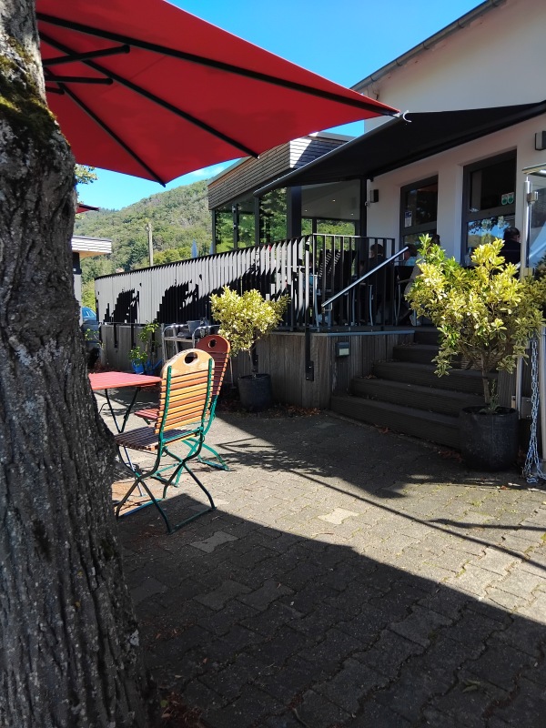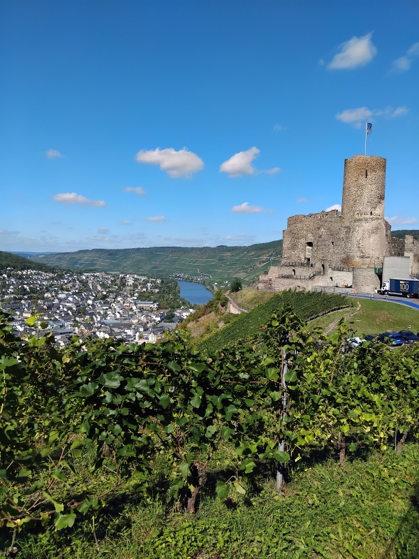 In Bernkastel gingen wir im Moselblümchen essen und fuhren dann zur Burg Landshut hoch. Leider konnte diese nicht besichtigt werden da eine Firma eine Jubiläumsveranstaltung auf der Burg hatte. Aber man hatte die schöne Aussicht auf Bernkastel-Kues mit der Mosel.